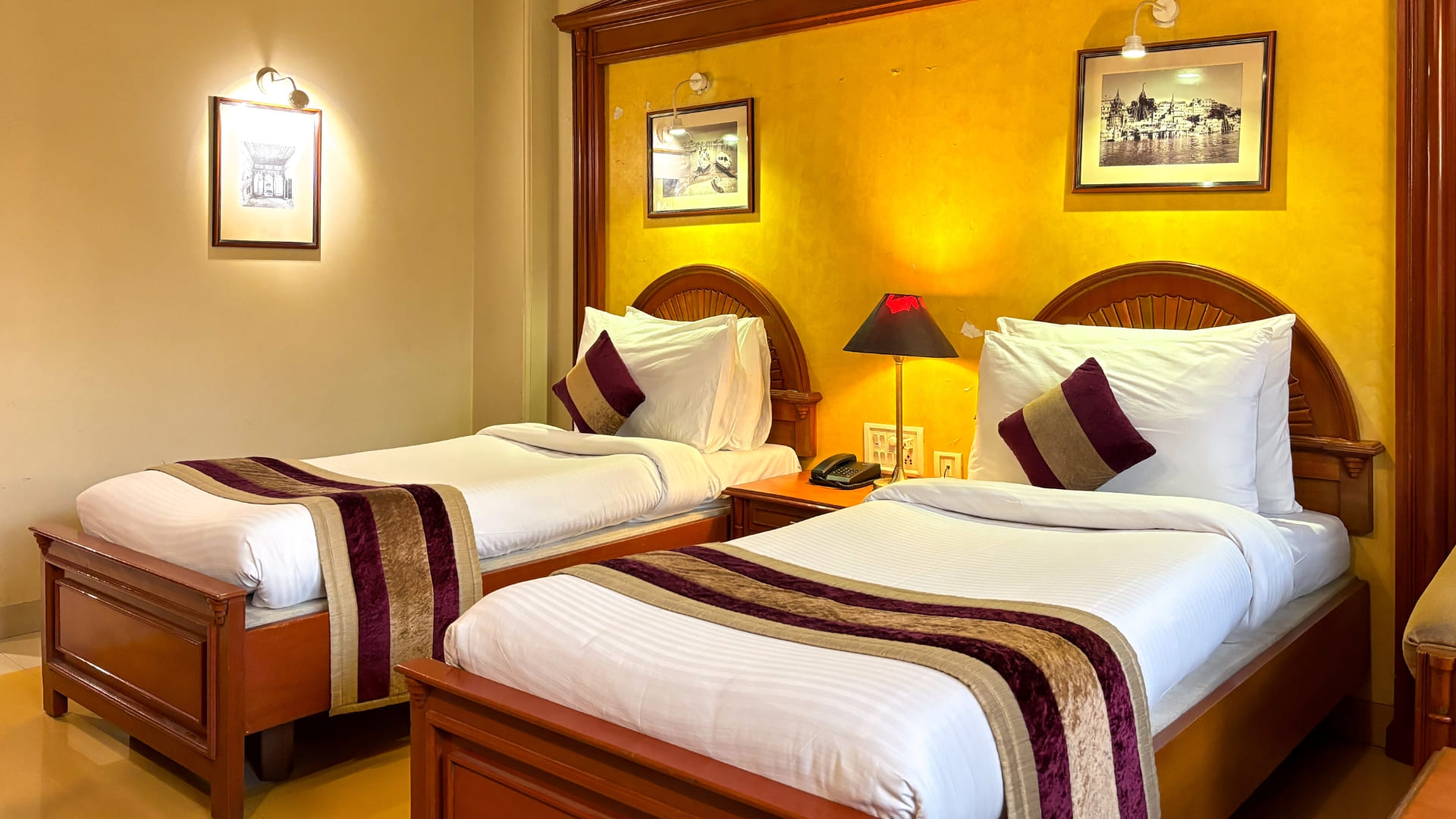 Relax in our Deluxe Room, designed for comfort with stylish décor and a cozy atmosphere. Enjoy a peaceful stay with all modern amenities and a warm touch of Banarasi hospitality.
